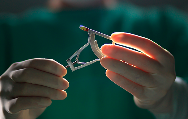 O aparelho utilizado é o Piezotome M+ byActeon, que age através de microvibração em ponteiras conectadas a uma caneta controlada pelo cirurgião, e não funciona ao entrar em contato com partes moles, aumentando a segurança.